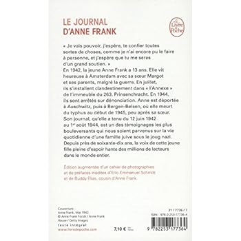 Anne Frank est née le 12 juin 1929 à Francfort. Sa famille a émigréaux Pays-Bas en 1933. À Amsterdam, elle connaît une enfance heureuse jusqu’en 1942, malgré la guerre. Le 6 juillet 1942, les Frank s’installent clandestinement dans «l’Annexe» de l’immeuble du 263, Prinsengracht. Le 4 août 1944, ils sont arrêtés sur dénonciation. Déportée à Auschwitz, puis à Bergen-Belsen, Anne meurt du typhus en février ou mars 1945, peu après sa sœur Margot. La jeune fille a tenu son journal du 12 juin 1942 au 1er août 1944, et son témoignage, connu dans le monde entier, reste l’un des plus émouvants sur la vie quotidienne d’une famille juive sous le joug nazi. Cette édition comporte des pages inédites.